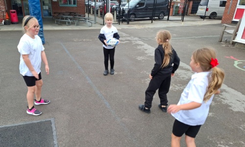 In PE, we've been developing our rugby skills. We've been learning to throw and catch the rugby ball by playing games and taking part in different activities. The children are slowly becoming more confident when moving and throwing the ball.
