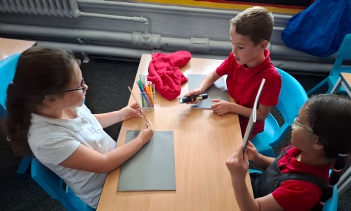 In science, we've been learning all about light. We went into a dark room and learnt that darkness is the absence of light. We used mirrors to reflect light onto an object and used torches to create shadow puppets.